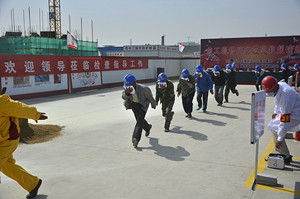 &On the morning of May 13, 2016, the group held a large-scale fire drill in Jinan project site. Shao Zhipeng, deputy secretary of the Party Working Committee and director of the office of Luokou street, Tianqiao District, Jinan City, Jiang Shunli, deputy director of the administration of work safety of Tianqiao District, Xu Chao, head of the supervision station of project quality and work safety of Tianqiao District, Li Jie, head of Xincheng police station, Feng Bo, deputy head of the fire brigade of Tianqiao District, attended and guided the drill activities. Zhang Yedong, manager of the production safety department of the group, coordinated the whole process of the performance activities 。 &In order to enhance the effect of the drill, Luokou Street office specially invited relevant personnel of each village and construction unit within the jurisdiction to watch the drill on site. &The drilling activity was determined through preliminary negotiation and hosted by Luokou sub district office of Tianqiao District, and undertaken by the sixth company of the group and its Jinan project department. The main purpose of the drill is to enhance the basic knowledge of fire control of all employees, surrounding villages and construction site personnel, enhance their self-protection ability, master the emergency response and escape skills for sudden fire, learn to extinguish the fire and evacuate personnel in an orderly manner, so as to ensure the life safety and property safety of employees. &There are five processes in the whole drilling process, which are: (1) fire officers and soldiers explain the basic knowledge of fire fighting and demonstrate the use of fire extinguishers; (2) find the fire, report the fire and notify 119 in time; (3) fire fighting team; (4) personnel evacuation; (5) emergency rescue. &After the drill, Shao Zhipeng, deputy secretary of Luokou Street Party Working Committee and director of the office, made a concluding speech.