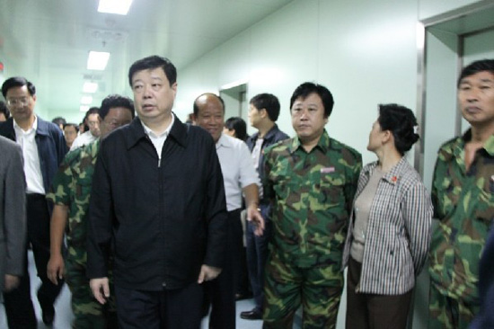 2010年9月25日,由集團(tuán)公司援建的北川羌族自治縣人民醫(yī)院正式掛牌投入使用。在簡(jiǎn)短的開業(yè)儀式之后,中共山東省委書記、省人大主任姜異康參觀、視察了人民醫(yī)院工程建設(shè)情況,集團(tuán)公司總經(jīng)理朱九洲、副總經(jīng)理閆鵬、援川指揮部總指揮孫孔喜等陪同。在參觀、視察過程中,姜異康書記對(duì)濰坊和昌大的援建工作給予了充分肯定,并代表省委、省政府對(duì)全體援建人員表示感謝和親切慰問。參觀、視察結(jié)束后,援建人員齊唱“濰坊援建之歌”,獻(xiàn)給山東的親人。 ![]() 總經(jīng)理朱九洲(右三)陪同省委書記姜異康視察援建北川人民醫(yī)院