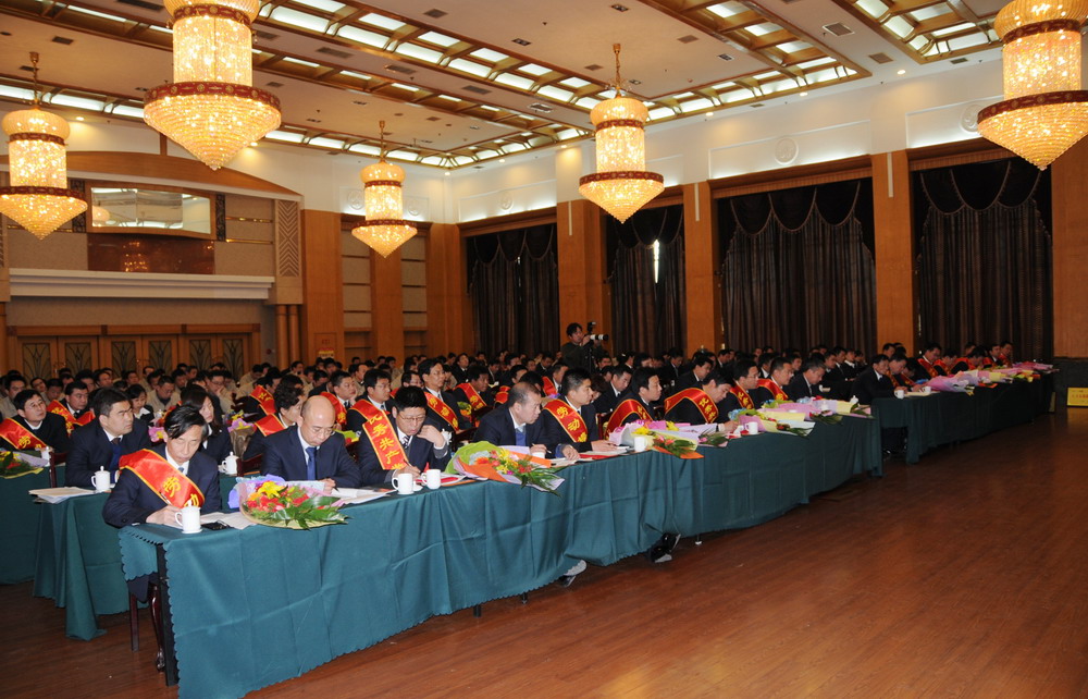 按照預定日程,在五屆一次職工代表大會上,總經理朱九洲作集團公司工作報告,財務負責人張學智作集團公司2011年度財務決算和2012年度財務預算方案報告;在2011年度總結表彰大會上,黨委副書記滕忠斌宣讀了表彰決定,對受到表彰的68個先進集體,103名先進個人進行了頒獎;最后市建設局副局長張文和集團公司董事長徐鵬強分別做了重要講話。