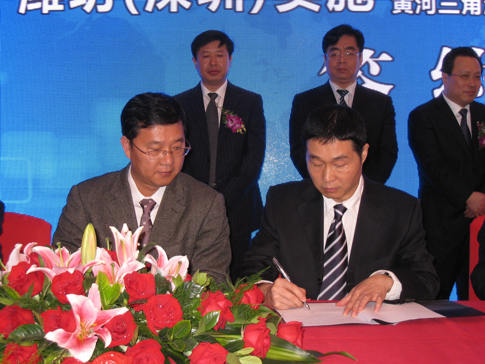 2012年4月6日,濰坊(深圳)實(shí)施山東半島藍(lán)色經(jīng)濟(jì)區(qū)、黃河三角洲高效生態(tài)經(jīng)濟(jì)區(qū)戰(zhàn)略合作懇談會(huì)在深圳召開(kāi),濰坊市委書記許立全等市領(lǐng)導(dǎo)出席了會(huì)議,集團(tuán)公司董事長(zhǎng)、黨委書記徐鵬強(qiáng)應(yīng)邀參加懇談會(huì)并參加重點(diǎn)項(xiàng)目簽約活動(dòng)。