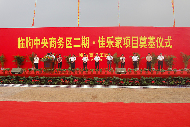 9月8日,濰坊百貨集團(tuán)中央商務(wù)區(qū)二期佳樂家項(xiàng)目奠基儀式在臨朐縣隆重舉行。集團(tuán)公司總經(jīng)理朱九洲出席奠基儀式。出席奠基儀式領(lǐng)導(dǎo)還有臨朐縣委書記、縣人大常委會(huì)主任顧建華,縣人大常委會(huì)黨組書記、第一副書記王晉成,縣政協(xié)主席趙永娟,副縣長黃芳等。第二分公司項(xiàng)目管理骨干,臨朐縣直有關(guān)部門負(fù)責(zé)人、城關(guān)街道有關(guān)人員參加了上述活動(dòng)。 奠基儀式由臨朐縣委副書記殷修湖主持,濰坊百貨集團(tuán)臨朐佳樂家置業(yè)公司總經(jīng)理張珉介紹了項(xiàng)目的籌建情況,臨朐縣副縣長黃芳致辭。 濰坊百貨集團(tuán)臨朐中央商務(wù)區(qū)二期佳樂家項(xiàng)目總投資10億元,占地7.5萬平方米,總建筑面積約25萬平方米。項(xiàng)目定位為大型城市綜合體,主要業(yè)態(tài)包括大型購物中心、室內(nèi)步行街、主題體驗(yàn)式商業(yè)街區(qū)、城市住宅、星級(jí)酒店、高端寫字樓、公寓等,建成后,將成為集商業(yè)、辦公、金融、文化、娛樂和居住功能于一體的大型城市綜合體、臨朐標(biāo)桿式、一站式生活商業(yè)中心,能夠更好地完善城市功能,提升區(qū)域價(jià)值。