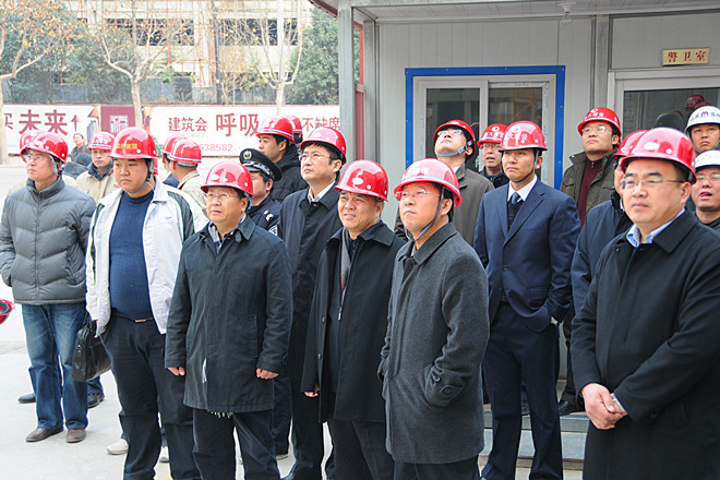 圖為徐鵬強(qiáng)董事長與出席封頂儀式的嘉賓在現(xiàn)場