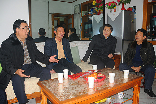 1月21日下午,濰坊市政協(xié)主席崔建平在市政協(xié)秘書長(zhǎng)許華和市總工會(huì)副主席郭召義的陪同下,到集團(tuán)公司走訪慰問全國(guó)勞模、三分公司退休職工劉洪章,送上新春祝福和誠摯問候。集團(tuán)公司黨委副書記滕忠斌陪同走訪。