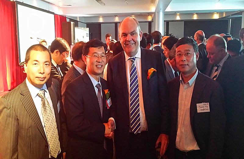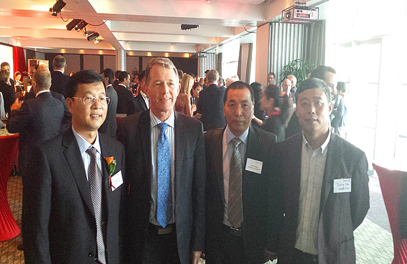 徐董事長(左二)與新西蘭經(jīng)濟(jì)發(fā)展部長Steven Joyce   新西蘭國家黨主席Peter Goodfellow   與中國駐新西蘭大使王魯彤