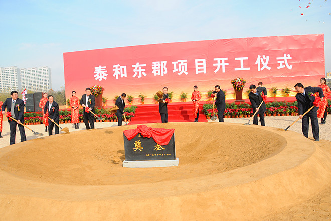2012年11月20日上午,由集團泰和公司開發(fā)的“泰和東郡”項目舉行了隆重的開工奠基儀式。集團高管層領導徐鵬強、李坤明、姜建魯、穆乃杰、張連悅、閆鵬、劉雁冰出席開工奠基儀式。出席開工奠基儀式并在主席臺就位的領導和嘉賓有濰坊市委常委、高新區(qū)黨工委書記、管委會主任趙志遠,高新區(qū)黨工委副書記、管委會副主任陳甲才,高新區(qū)黨工委委員、管委會副主任兼經發(fā)局局長曲志剛,高新區(qū)黨工委委員、黨政辦公室主任唐偉,集團董事長徐鵬強,山東海王銀河醫(yī)藥公司董事長孔憲俊,集團副總經理兼泰和公司總經理姜建魯。集團全體中層以上人員、第四分公司部分管理人員參加了開工奠基儀式。開工奠基儀式由高新區(qū)黨工委委員、管委會副主任譚建民主持。