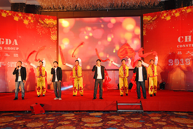飛雪盛扮鳶都,一派銀裝素裹;瑞氣盈門昌大,處處歌悅舞動(dòng)。2012年12月30日,雖是嚴(yán)寒的“二九一”,卻難掩昌大人如火的激情。此時(shí)的昌大,如一艘滿載著龍年盛運(yùn)的航母,徐徐??扛蹫?hellip;…這一年,昌大人全面發(fā)力穩(wěn)增長(zhǎng),調(diào)整結(jié)構(gòu)促轉(zhuǎn)型,在實(shí)踐自己城市綜合運(yùn)營(yíng)商目標(biāo)的征程上大踏步前進(jìn),經(jīng)濟(jì)技術(shù)、理念文化、品牌建設(shè)、思想道德實(shí)現(xiàn)歷史新突破,社會(huì)貢獻(xiàn)率實(shí)現(xiàn)新增長(zhǎng),特別是會(huì)展中心工程順利交付使用,卡納圣菲高端地產(chǎn)項(xiàng)目圓滿開放,高新花園住宅小區(qū)國(guó)優(yōu)工程成功創(chuàng)建,北海路南擴(kuò)工程高標(biāo)準(zhǔn)建成,在整個(gè)行業(yè)持續(xù)低迷的情況下,集團(tuán)的綜合實(shí)力再次得到彰顯。一個(gè)“近者悅,遠(yuǎn)者來(lái)”、有尊嚴(yán)的幸福昌大正在得到全面的建設(shè);而在這一天,昌大人以自己的方式舉辦了2013年的新年酒會(huì),歌舞慶龍年,金蛇迎祥瑞。 總經(jīng)理朱九洲在新年致辭中,重點(diǎn)回顧了集團(tuán)一年來(lái)的發(fā)展歷程。集團(tuán)的各項(xiàng)事業(yè)取得了新的成績(jī)。 在這瑞雪映照、喜氣祥和的新年酒會(huì)上,集團(tuán)員工自編自演自導(dǎo)了13個(gè)文藝節(jié)目,有第四、第八、安裝分公司自創(chuàng)的舞蹈《鮮花的祝?!?;第一、第四、第五、安裝分公司自編的舞蹈《江南STYLE》;機(jī)施分公司自編的小品《超幸福售樓處》,市政公司自創(chuàng)的小品《工地探親》,第七分公司自編舞臺(tái)劇《旅途》,第一分公司自創(chuàng)的啞劇《蓋章》;第二、第八分公司合演的相聲《你是我兄弟》;第六分公司和機(jī)施分公司自編的MV歌曲《父親》;集團(tuán)總部和第六分公司合作的歌伴舞《大中國(guó)》,第二、第五、第八分公司和泰和公司聯(lián)袂的歌伴舞《舉杯吧,朋友》,市政公司自編歌伴舞《快樂(lè)崇拜》;裝飾分公司演出的京劇《轅門射戟》新段;第三分公司自創(chuàng)健美操《淑女愛(ài)運(yùn)動(dòng)》,這些節(jié)目,或氣勢(shì)如宏、或舞美歌悅、或滑稽幽默、或時(shí)尚奔放、或優(yōu)雅沉香、或豪放激情,以此盡展昌大人2012年愉悅的心情。與往年相比,今年的文藝演出,規(guī)模更大,節(jié)目類型更多,節(jié)目包裝效果更好,更貼近企業(yè)實(shí)際。還有一個(gè)最突出的亮點(diǎn)是今年的節(jié)目編排更大范圍地突破了單位界限,實(shí)現(xiàn)了單位間的大聯(lián)合大串燒。在年底各項(xiàng)業(yè)務(wù)更為繁重的時(shí)候,全體演服人員自覺(jué)克服工演矛盾,以極大的熱情投入新年酒會(huì)的準(zhǔn)備工作,許多單位的演員白天忙碌一天,主要靠晚上或加班進(jìn)行排練,有些演職員因?yàn)樘珓诶鄄〉沽?,還堅(jiān)持排練和工作,表現(xiàn)出了強(qiáng)烈的責(zé)任心和極高的集體榮譽(yù)感。集團(tuán)總部相關(guān)部門全力保障文藝演出和酒會(huì)的各項(xiàng)籌備工作,確保了新年酒會(huì)的順利實(shí)施。