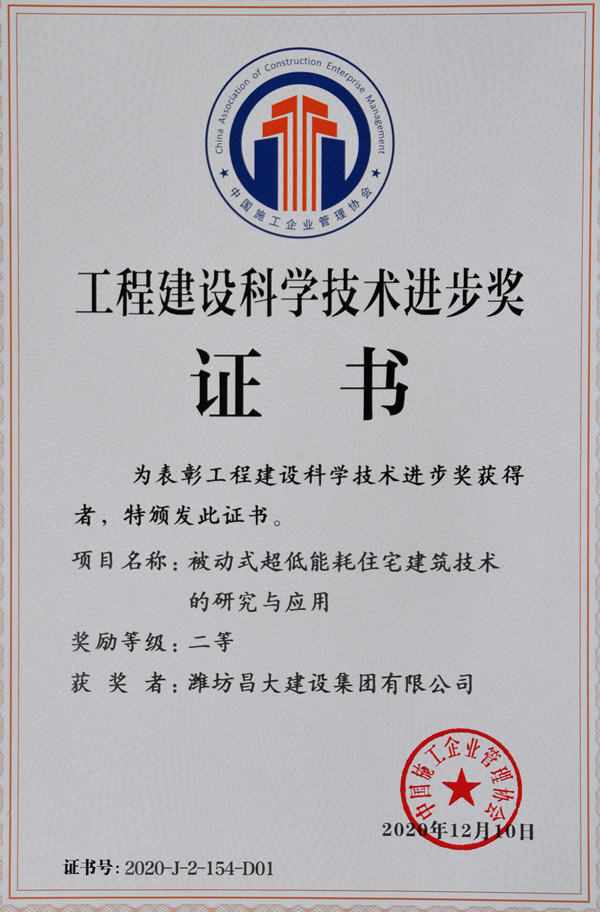 2020年12月11日,中國(guó)施工企業(yè)管理協(xié)會(huì)在北京召開“2020年工程建設(shè)科學(xué)技術(shù)獎(jiǎng)勵(lì)大會(huì)”,表彰了工程建設(shè)最高科學(xué)技術(shù)獎(jiǎng)1項(xiàng),工程建設(shè)技術(shù)發(fā)明獎(jiǎng)10項(xiàng),工程建設(shè)科學(xué)技術(shù)進(jìn)步獎(jiǎng)343項(xiàng)。其中,集團(tuán)二建公司工程公司《被動(dòng)式超低能耗建筑住宅技術(shù)的研究與應(yīng)用》,經(jīng)過形式審查、專家網(wǎng)絡(luò)評(píng)審、專家委員會(huì)會(huì)議評(píng)審、科學(xué)技術(shù)委員會(huì)審定四個(gè)階段(本年度評(píng)審?fù)ㄟ^率只有40%),最終榮獲工程建設(shè)科學(xué)技術(shù)進(jìn)步獎(jiǎng)二等獎(jiǎng)。![]() |