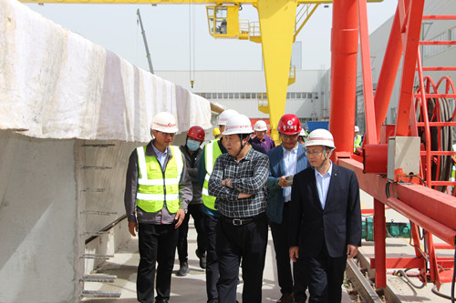 集團寶通街高架快速路工程預制梁場正式投入生產(chǎn) 總裁朱九洲親臨現(xiàn)場指導