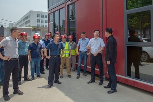 2021年6月30日上午,濰坊市副市長(zhǎng)田民利到集團(tuán)寶通街快速路項(xiàng)目指揮部調(diào)研指導(dǎo)。在指揮部,田民利通過(guò)實(shí)時(shí)畫(huà)面觀看工程情況,對(duì)集團(tuán)目前施工情況給予充分肯定,對(duì)項(xiàng)目隔音屏制作材料、制作工藝、價(jià)格等進(jìn)行了詳細(xì)調(diào)研并提出了要求。期間還參觀了集團(tuán)設(shè)在指揮部的黨校,對(duì)集團(tuán)把支部建在項(xiàng)目上強(qiáng)化黨建引領(lǐng)舉措給予贊揚(yáng)。濰坊市寶通街快速路指揮部辦公室常務(wù)副主任田太卿,濰坊市城市建設(shè)發(fā)展投資集團(tuán)有限公司副總經(jīng)理、工程總監(jiān)侯繼軍等陪同參加活動(dòng)。集團(tuán)董事長(zhǎng)徐鵬強(qiáng)、總工程師兼集團(tuán)寶通街項(xiàng)目現(xiàn)場(chǎng)總指揮房海全程陪同并匯報(bào)有關(guān)工程情況。