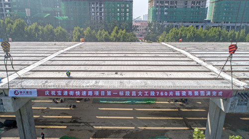 集團(tuán)承建寶通街快速路項目順利進(jìn)入全新節(jié)點——高架箱梁吊裝全部完成