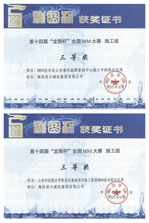 二則是,由中國圖學(xué)學(xué)會(huì)舉辦的第十四屆“龍圖杯”全國BIM大賽公布了獲獎(jiǎng)結(jié)果。集團(tuán)公司申報(bào)的《BIM技術(shù)在山東海化能源智控中心施工中的綜合應(yīng)用》、《山東科技職業(yè)學(xué)院實(shí)訓(xùn)基地項(xiàng)目施工階段BIM技術(shù)綜合應(yīng)用》均獲三等獎(jiǎng)。實(shí)現(xiàn)歷史新突破。