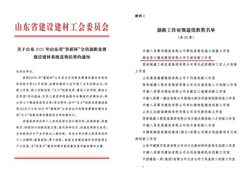 集團(tuán)王超工匠創(chuàng)新工作室獲2025年山東省”魯新杯”全員創(chuàng)新競(jìng)賽建設(shè)建材系統(tǒng)競(jìng)賽優(yōu)勝獎(jiǎng)